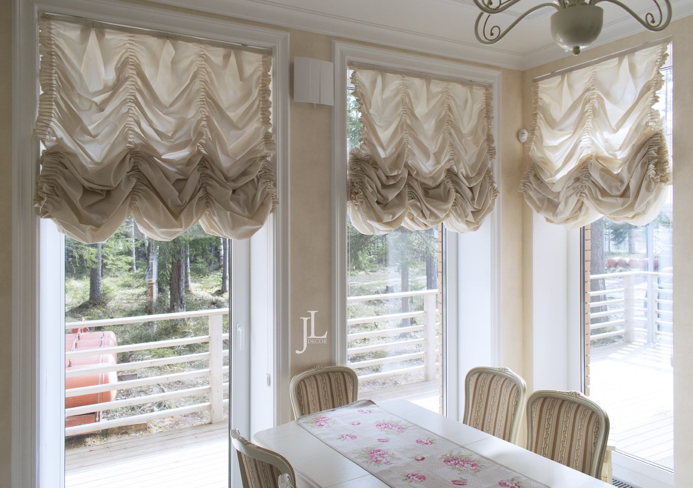 Австрийская штора лён топлёное молоко, карниз верёвочный